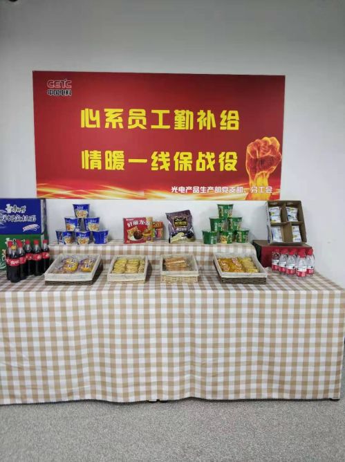 資產(chǎn)經(jīng)營部、焦平面事業(yè)部、光電產(chǎn)品生產(chǎn)部等分工會為持續(xù)加班加點的職工設(shè)立了“職工能量加油站”。