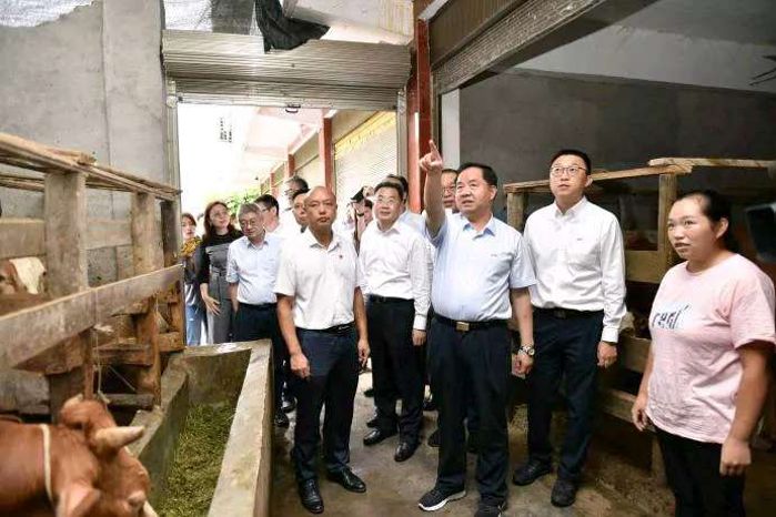 在高峰村脫貧致富帶頭人趙雪紅家里,陳肇雄走進牛棚認真查看養(yǎng)殖情況,親切詢問飼養(yǎng)數(shù)量、年收入情況。趙雪紅家曾經(jīng)因為一次突發(fā)的特大山洪,失去了親人,也幾乎喪失了對生活的信心。在中國電科家庭式母牛散養(yǎng)項目啟動后,她主動報名參與,并按照散養(yǎng)要求,全身心的做好科學(xué)飼養(yǎng)。2019年,趙雪紅賣了5頭半大牛犢,換來了近5萬元的收入,家里還有8頭牛在欄,價值近20萬元。陳肇雄對趙雪紅自立自強的精神表示贊賞,對其家庭的扶貧變化感到高興,叮囑她要發(fā)揮好致富帶頭人作用,帶動更多鄉(xiāng)親脫貧致富。